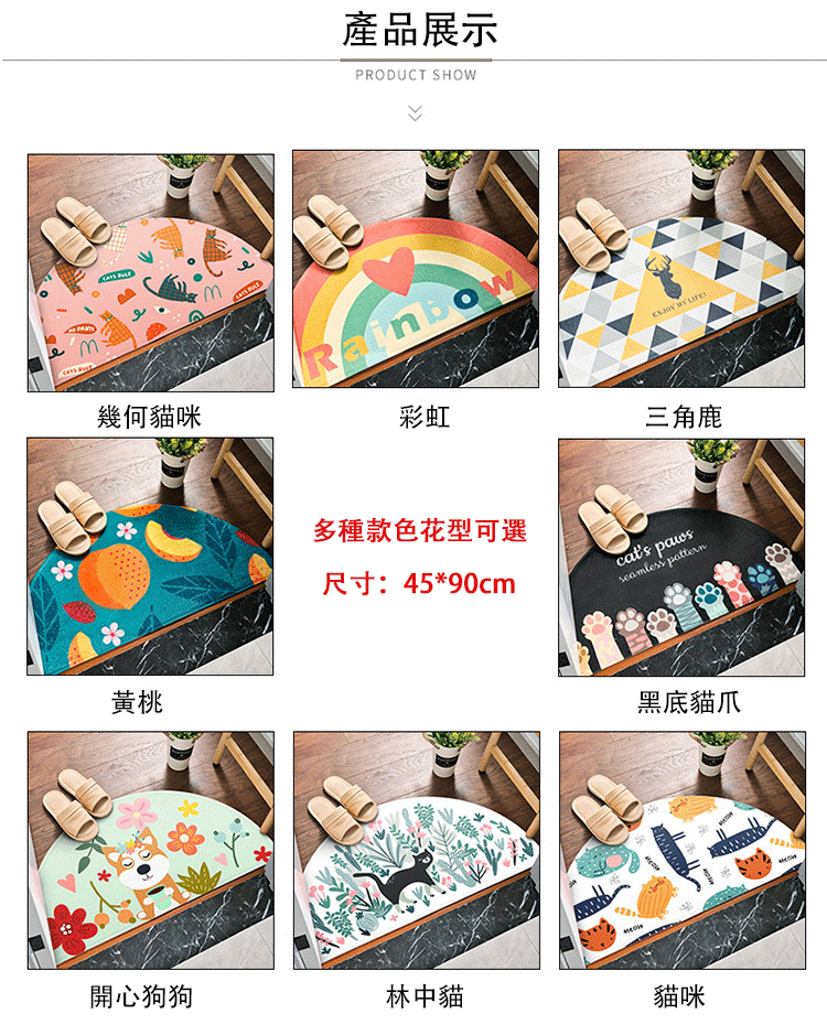 【吸水速乾 防滑安全】室內通用半圓地墊